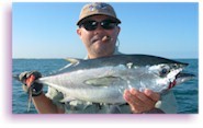 | a blue eyed tusk | Craig Smith & largest GT of our 2004 trip | Craig Smith & a nice flats golden trevally |